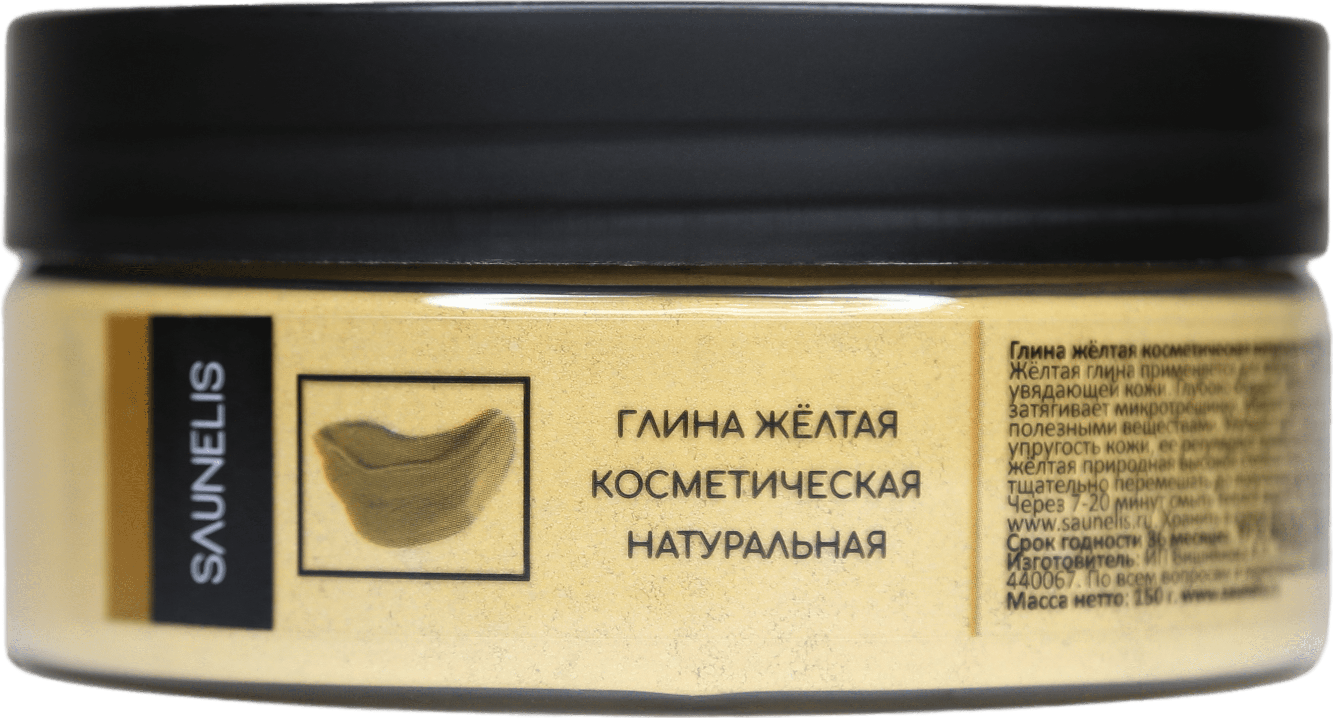 Глина желтая косметическая чистая, 150 гр.